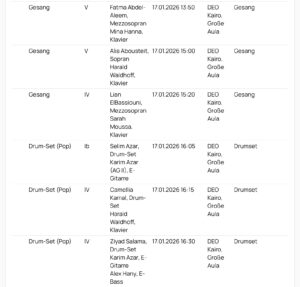 Am Samstag, 17. Januar 2026, findet an unserer Schule der Regionalwettbewerb „Jugend musiziert“ Kairo West statt. Unsere Schülerinnen und Schüler präsentieren ihr musikalisches Können in den Wertungsspielen in der großen Aula.